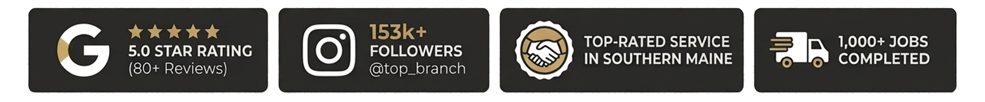 🌲 50 years of combined tree care experience. With over 1,000 completed jobs across Southern Maine, we've seen just about every tree situation imaginable.